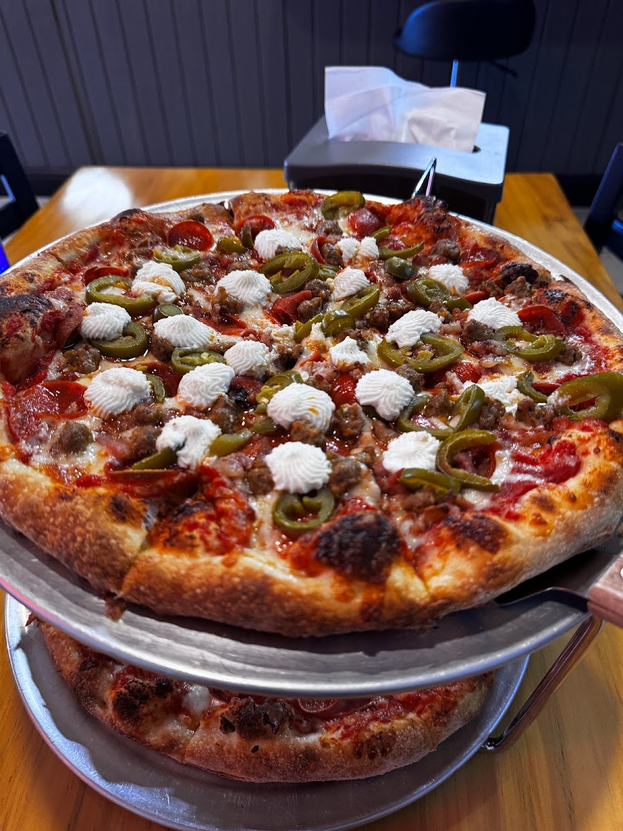 First of all this was my first time there. Honest review Pizza has a lot flop, but good, under carriage was cooked nicely. I’d give it a 7/10 Wings “very very dry meat” maybe just a bad experience but I’ll definitely try again, hopefully it’s better next time. 2/10 The wing sauce “their signature buffalo garlic” was like 9/10 very good. I did pay for a ranch I did not get. All good though accidents happen Environment and Hospitality was great 9/10 I’ll definitely return again, hopefully the chicken will be better. Thanks again guys!
