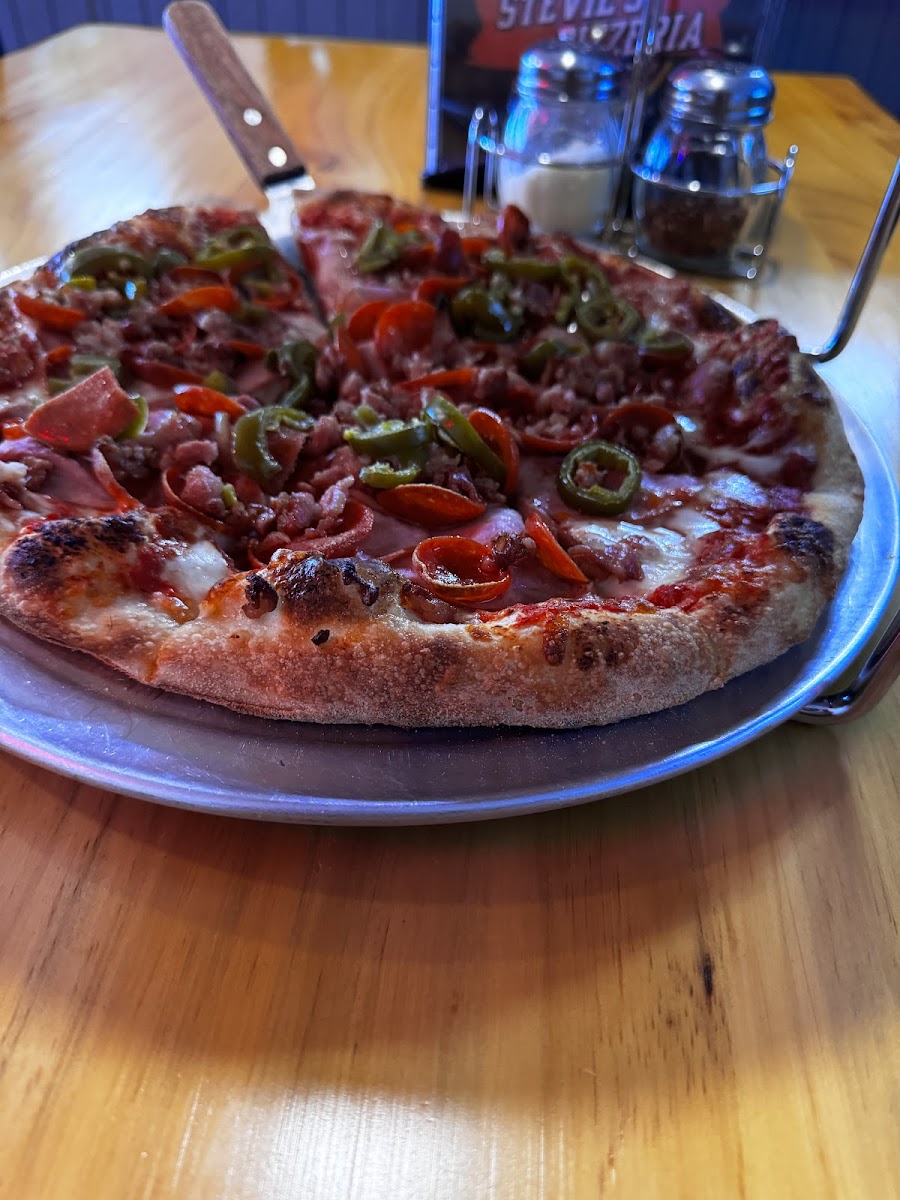 Wow. It's absolutely amazing.. Wish we would have tried them sooner. Perfect bubble trouble crust and an undercarriage that holds up. Can't wait to try another pie. This is honestly the best pizzeria in Oakdale and the surrounding area. Goodfellas is San Francisco was my favorite, and they just changed and let us down. Now our favorite is Stevie's. I want to try a Greek style or something Mediterranean anyways and I can't express enough that the crust is out of this world. Update: the large can't feed 3 people. Only complaint. Update 07/12/2025. The owner and the pizza maker made me a pizza, not even on the menu, Completely satisfied my hard to please complexed palette. The pie was absolutely amazing. Having a small town pizzeria, make this delicious of a pizza and this style is unheard of for our town. This Sicilian style Margarita was the best pizza I've had. It's absolutely amazing. Gorgeous presentation, and I really appreciate the owner going above and beyond for me. Because he didn't have too. It made the $40 pizza worth every penny because it's honestly a priceless pizza.
